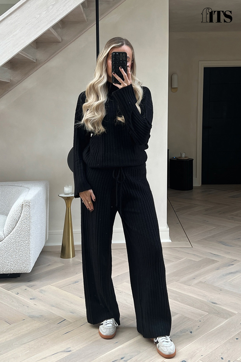 Ribbed Wide Leg Knitted Co-Ord Trouser